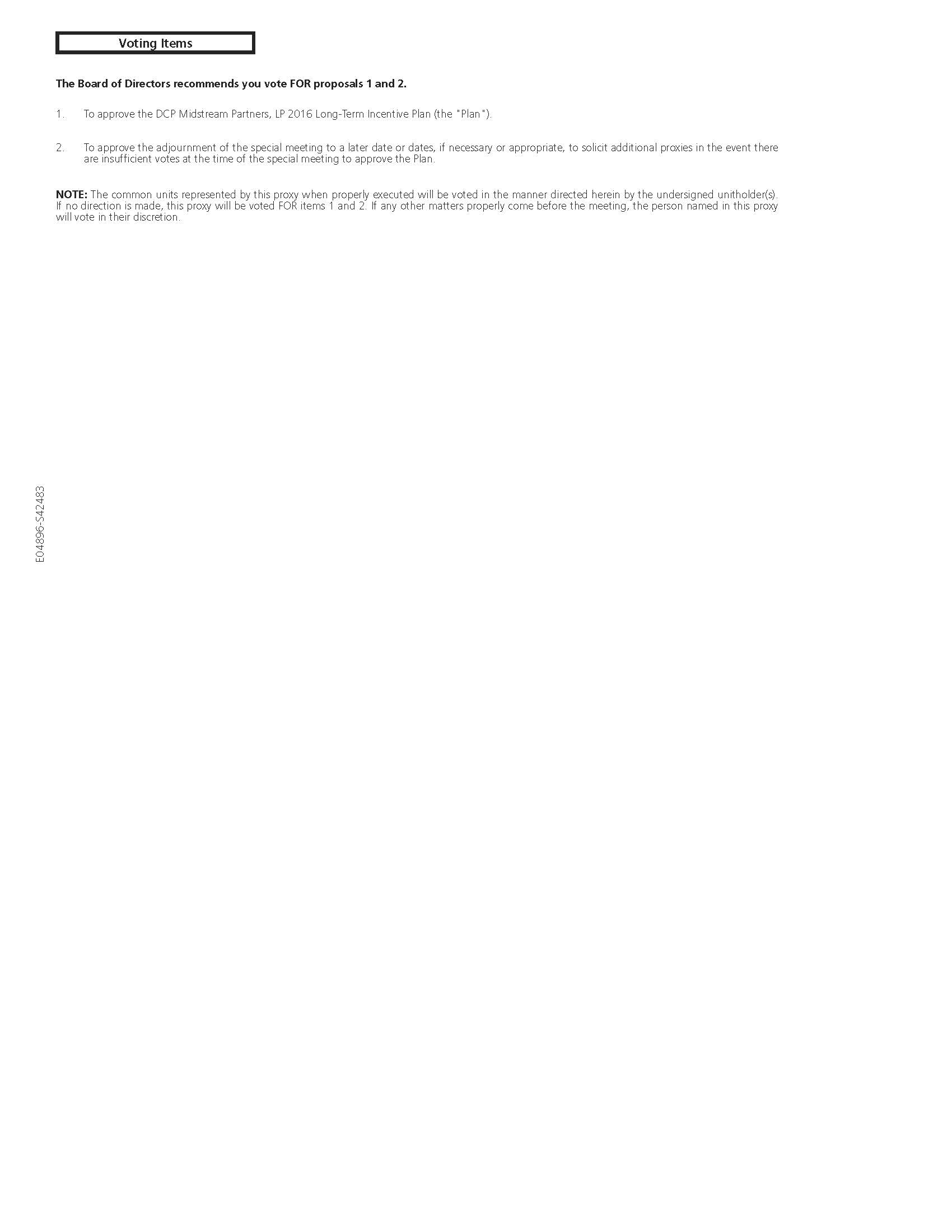 • | To approve the DCP Midstream Partners, LP 2016 Long-Term Incentive Plan (the “Plan”), which, among other things, permits common units to be reserved and made available for issuance with respect to awards under the Plan; and |