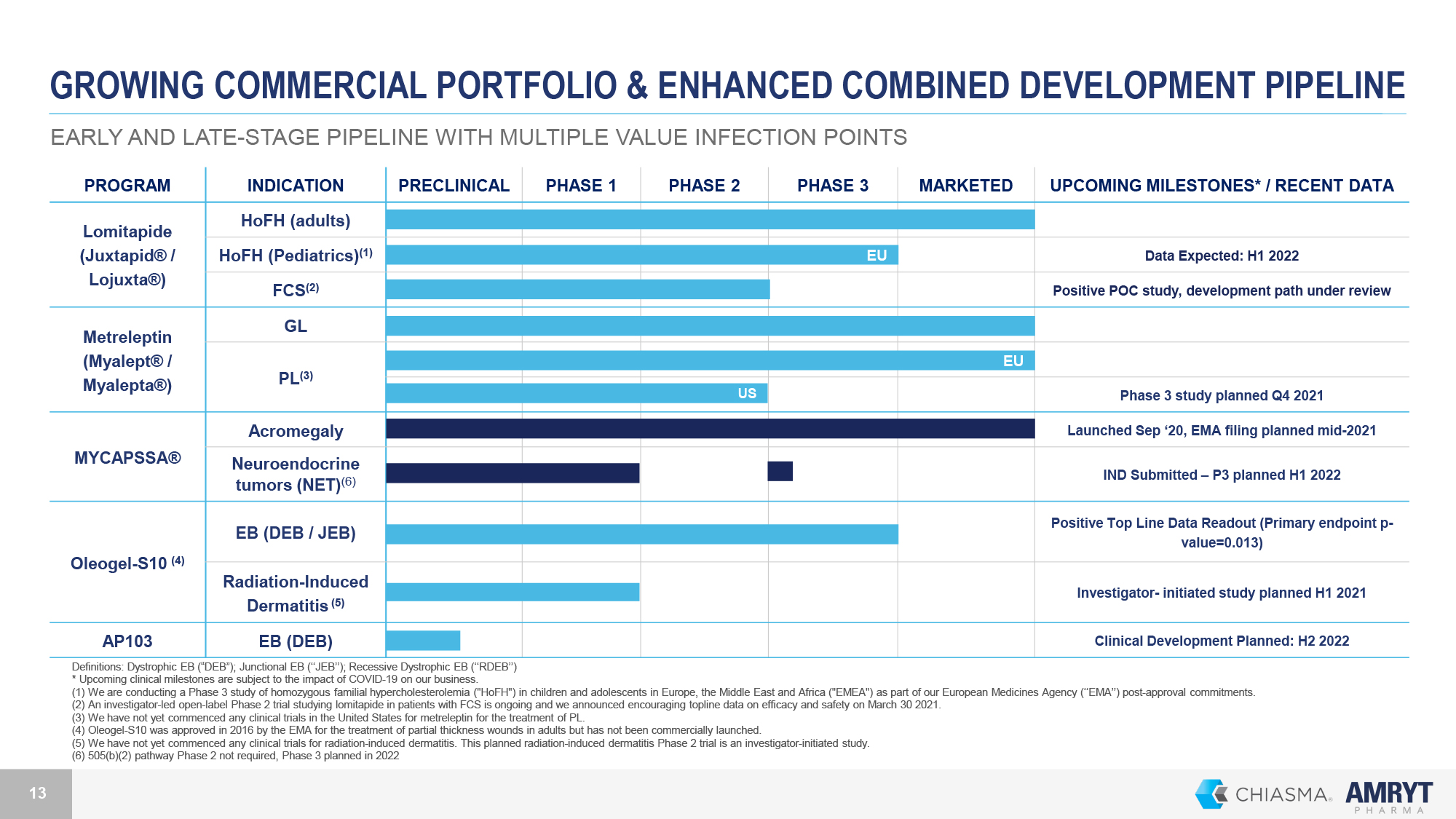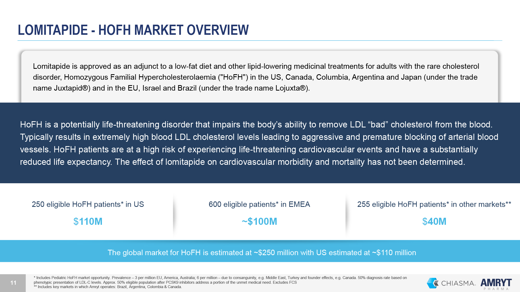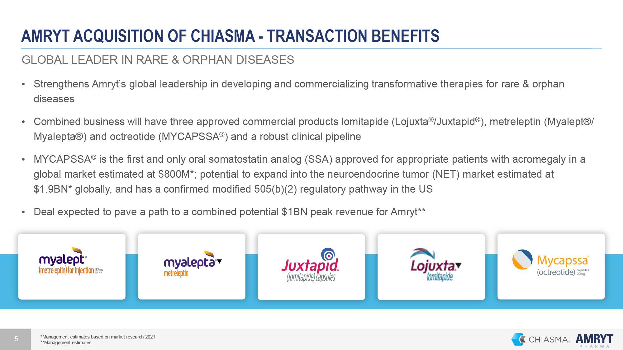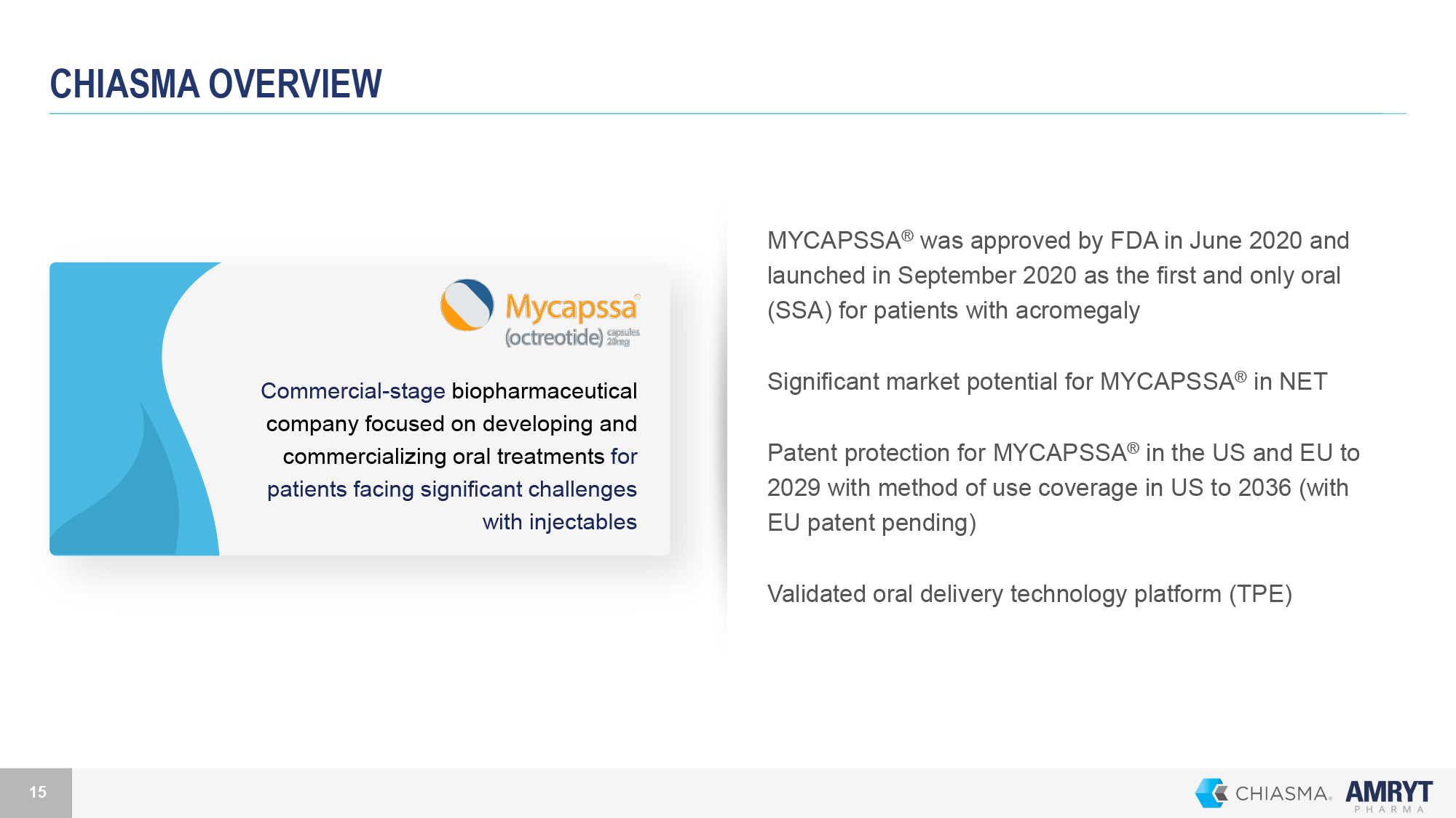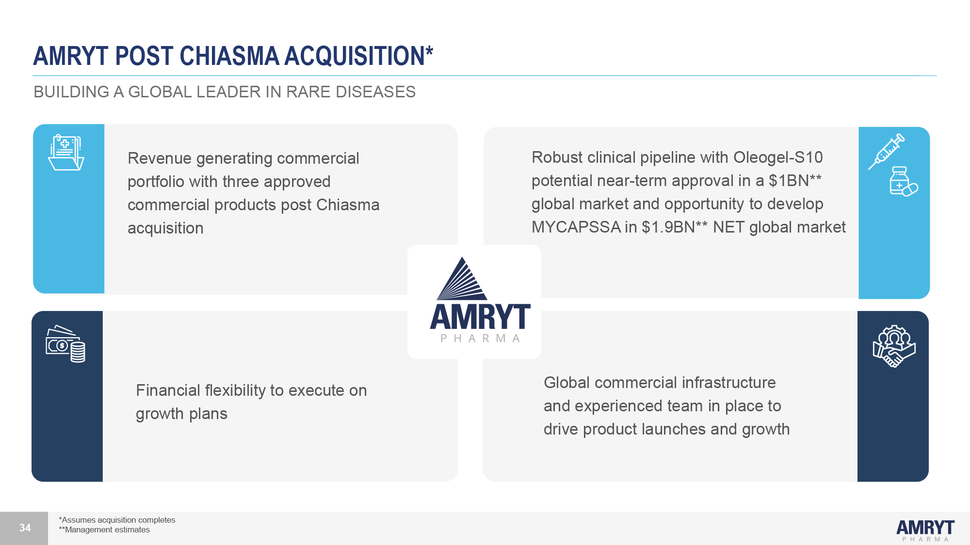been independently verified. The Amryt logo, Myalept®, Myalepta®, Juxtapid®, Lojuxta®, Filsuvez® and other trademarks or service marks of Amryt appearing in this presentation are the property of Amryt and the Chiasma logo, MYCAPSSA®, and other