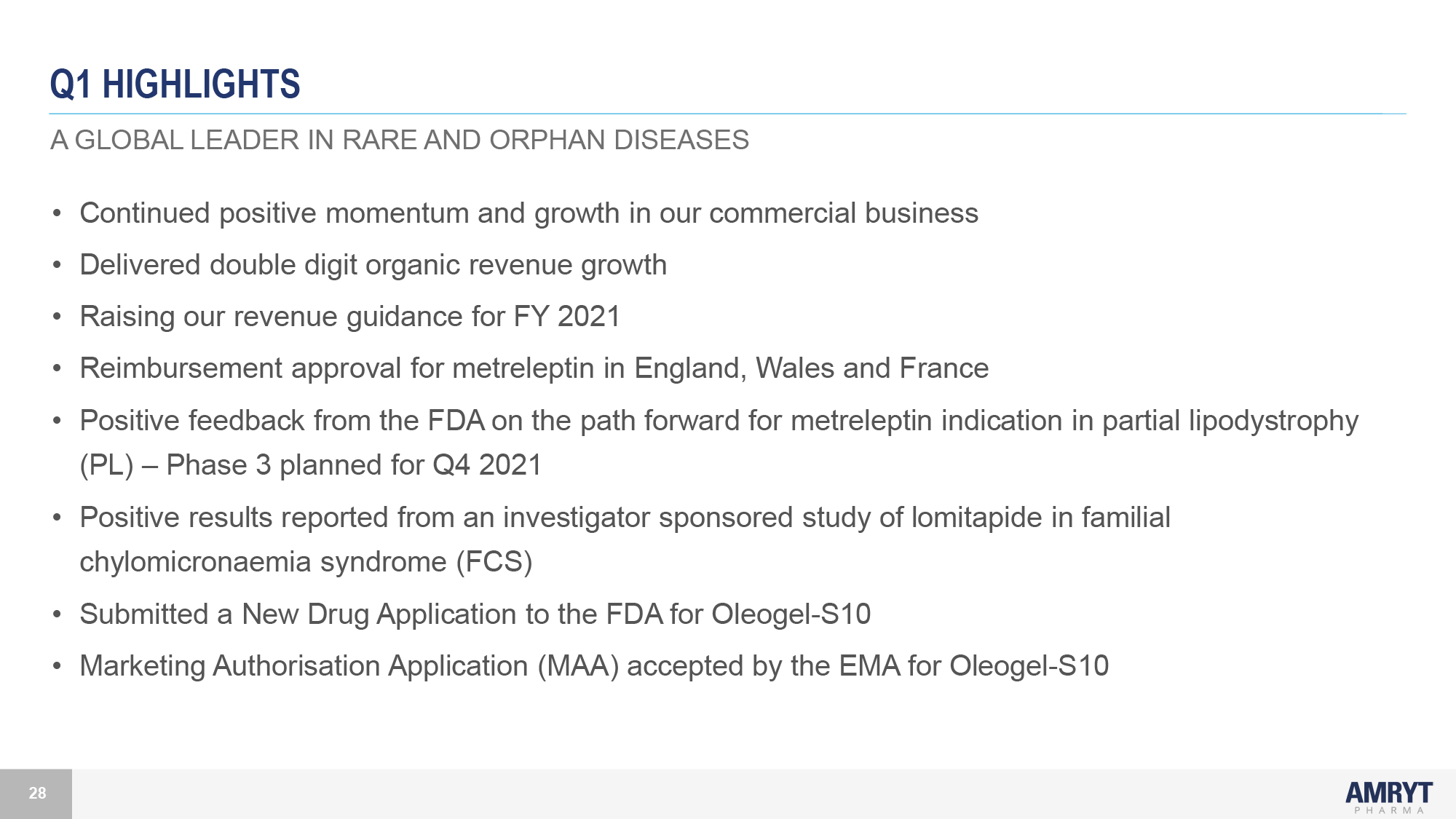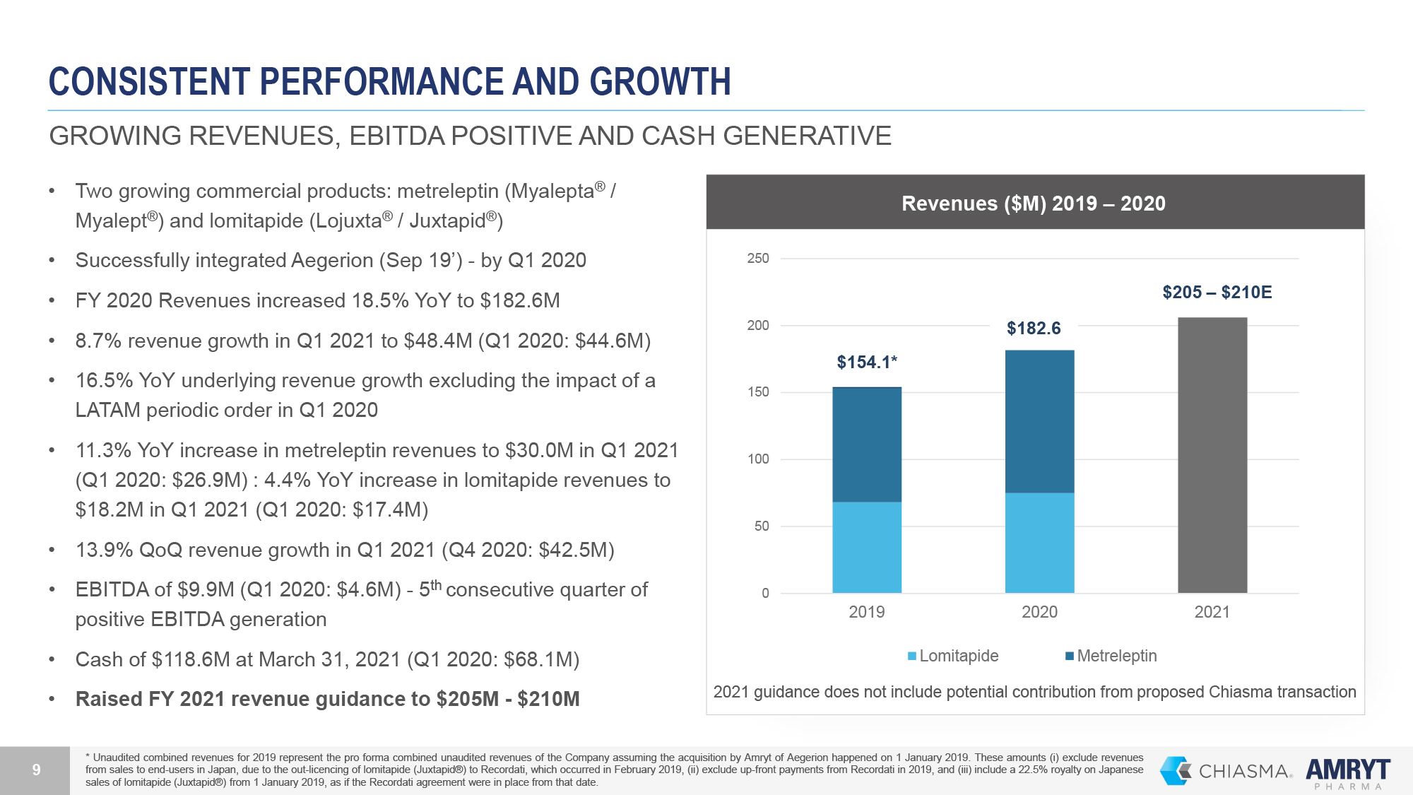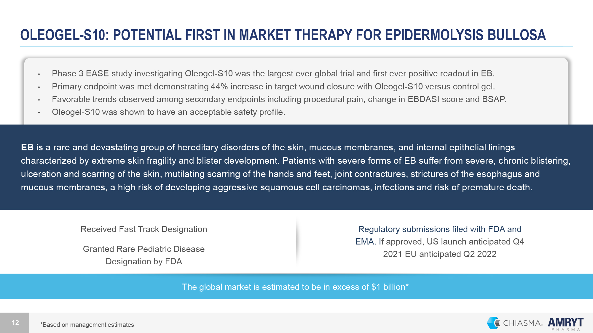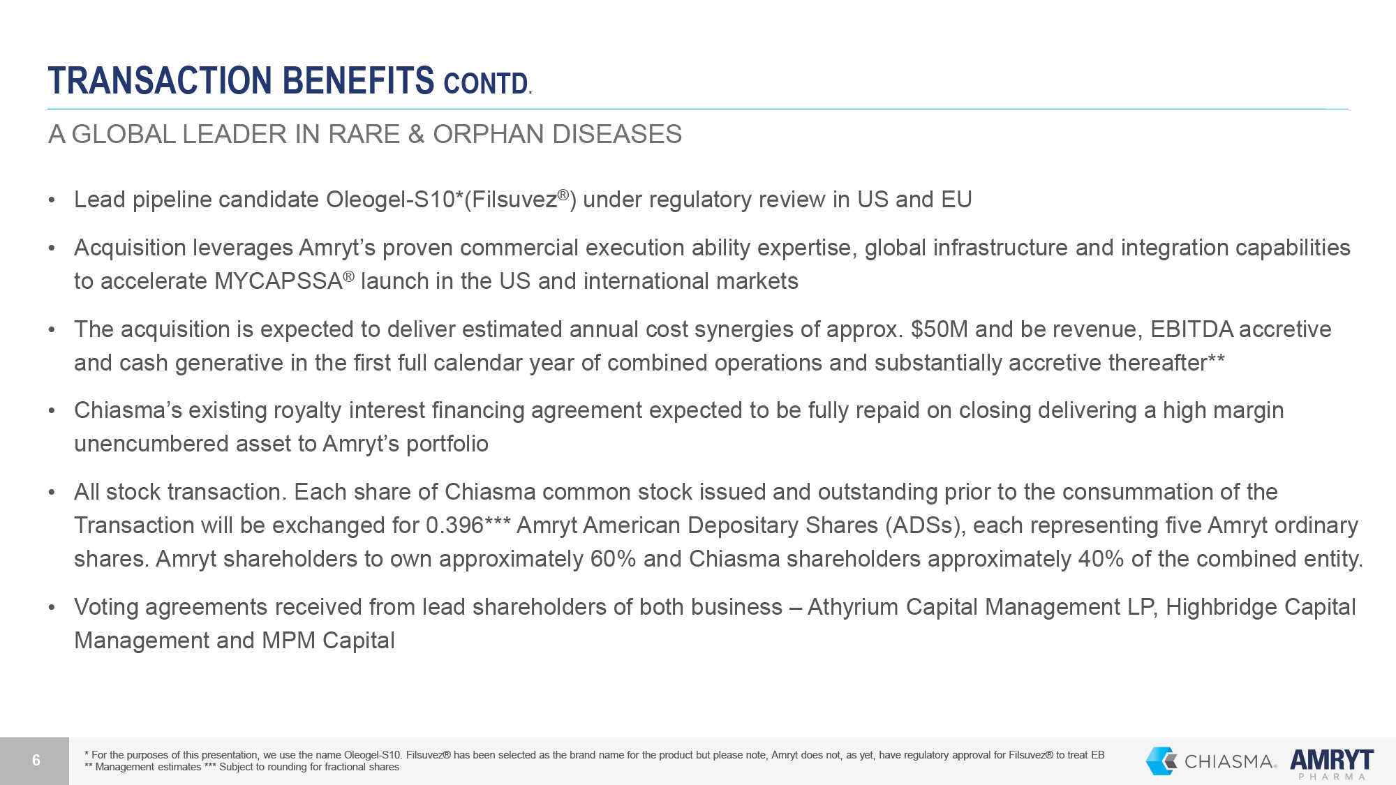 been independently verified. The Amryt logo, Myalept®, Myalepta®, Juxtapid®, Lojuxta®, Filsuvez® and other trademarks or service marks of Amryt appearing in this presentation are the property of Amryt and the Chiasma logo, MYCAPSSA®, and other