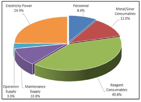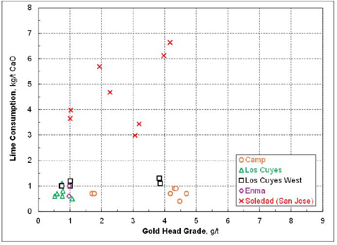 Plant design related parameters should be determined and collected, such as crushed material bulk density, leach feed and residue settling rates, slurry rheological property. The costs for these property determinations are estimated to be approximately US$80k.