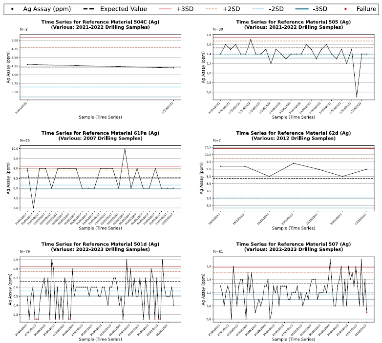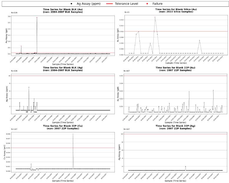 | Time Series Plots for Blank Material Samples Assayed Between 2012 and 2023 |