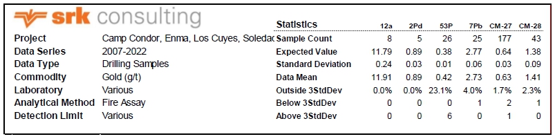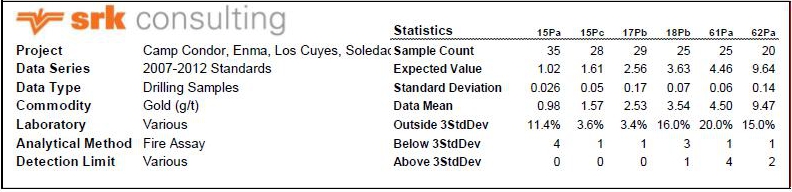 Maynard, A., Jones, P.A. 2011. NI 43-101 Technical Report (revised) on the Condor Gold Project located in Zamora, Ecuador. p. 124.