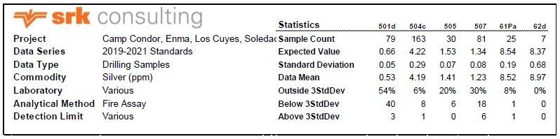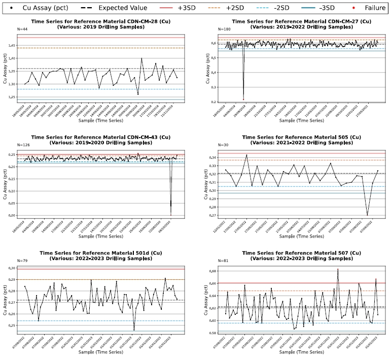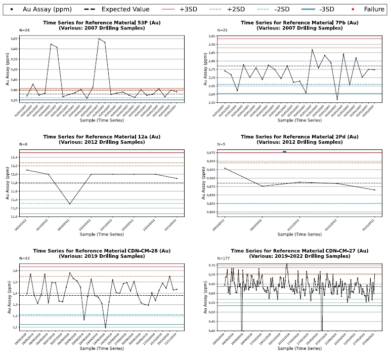 Time Series Plots Certified Reference Material Samples Assayed for the Condor Project Between 2019 and 2021