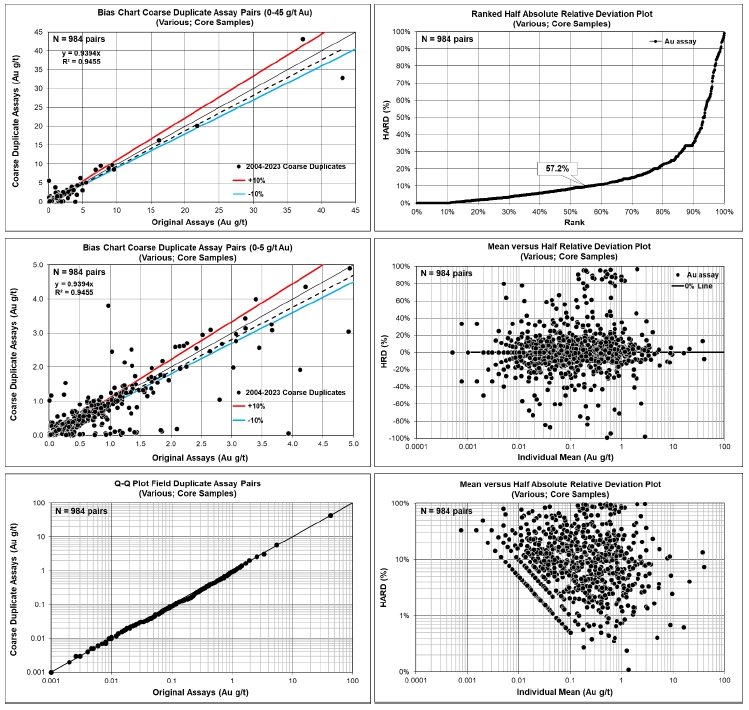 Bias Charts and Precision Plots for Coarse Reject Samples Analyzed Between 2004 and 2023 for Camp, Soledad, Los Cuyes and Enma Deposits