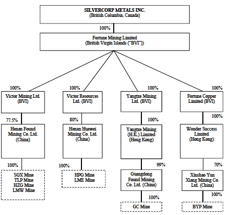 Victor Mining Ltd. (“Victor Mining”) was incorporated on October 23, 2003 under the laws of the British Virgin Islands (the “BVI”) and continued into Barbados on August 27, 2009 and back to the BVI on March 18, 2016. Victor Mining is a party to a cooperative agreement under which it has earned a 77.5% interest in Henan Found Mining Co. Ltd. (“Henan Found”), the Chinese company holding, among other assets: (i) the Ying silver, lead and zinc project (“SGX Mine”); (ii) the project in Tieluping (“TLP Mine”); (iii) the project in Hou Zhang Gou and Po Cai Gou (“HZG Mine”); (iv) the project in Haopinggou (“HPG Mine”); (v) the project in Longmen West (“LMW Mine”); and (vi) the project in Longmen East (“LME Mine”), each in Henan Province.. |