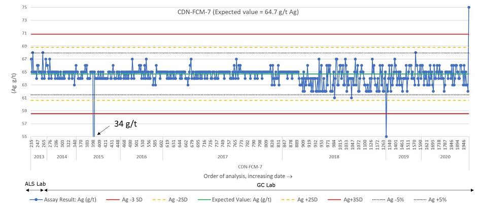 In 2018, Silvercorp further improved their QA/QC protocols to include regular and more frequent submission of CRMs, coarse blanks, and field duplicates with drilling and underground samples. Coarse reject duplicates and pulp duplicates were also incorporated into drill sampling programs. The proportion of check samples sent to a different laboratory was also increased. In 2019, Silvercorp initiated real-time monitoring of QA/QC protocols.