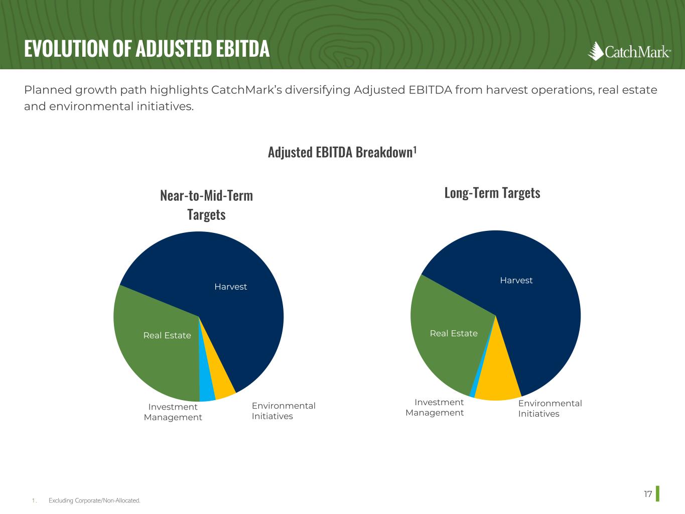 ENVIRONMENTAL INITIATIVES 16 CARBON SEQUESTRATION SOLAR WETLANDS MITIGATION BANKING Execute carbon offset projects on lower operability, non-core tracts Advance solar leasing initiatives which help produce energy and reduce greenhouse emissions in a sustainable manner Identify and execute on wetlands mitigation banking opportunities in existing portfolio and future acquisitions CatchMark will seek additional income-generating and value creation opportunities from environmental initiatives that could represent up to 20% of future cash available for distribution.