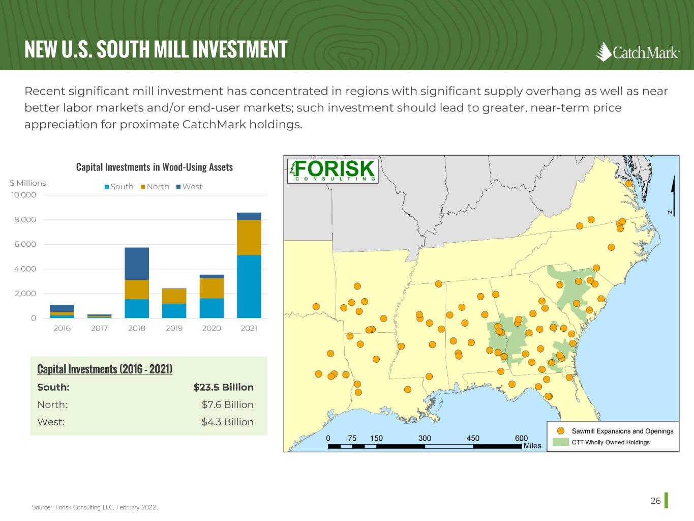 HIGH-DEMAND MILL MARKETS WITH STRONG FUNDAMENTALS 25 CatchMark targets investments in markets with favorable current and long-term supply/demand fundamentals. Source: Forisk Consulting LLC, February 2022.