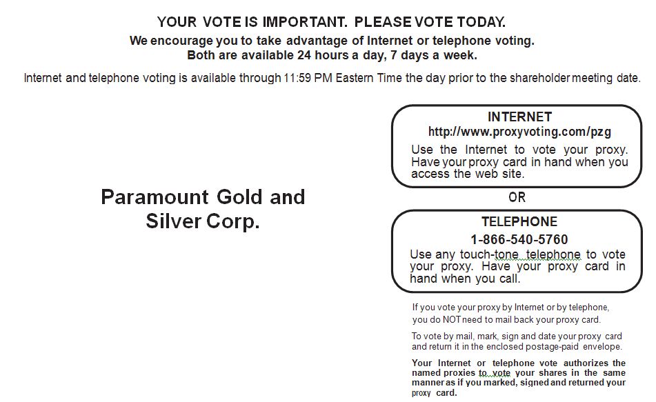 To the stockholders of Paramount Gold and Silver Corp.: