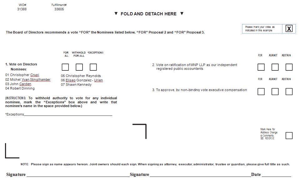Our Board has nominated Christopher Crupi, Christopher Reynolds, Michel Yvan Stinglhamber, John Carden, Robert Dinning, Shawn Kennedy and Eliseo Gonzalez-Urien. All nominees are currently members of the Board.
