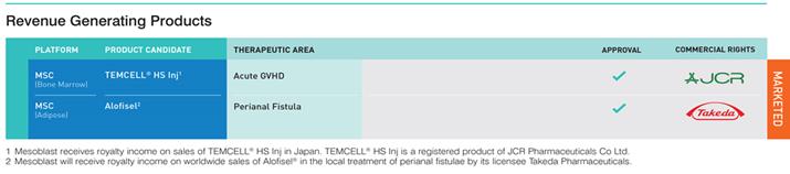 Patent License and Settlement Agreement with TiGenix S.A.U., dated December 14, 2017. |