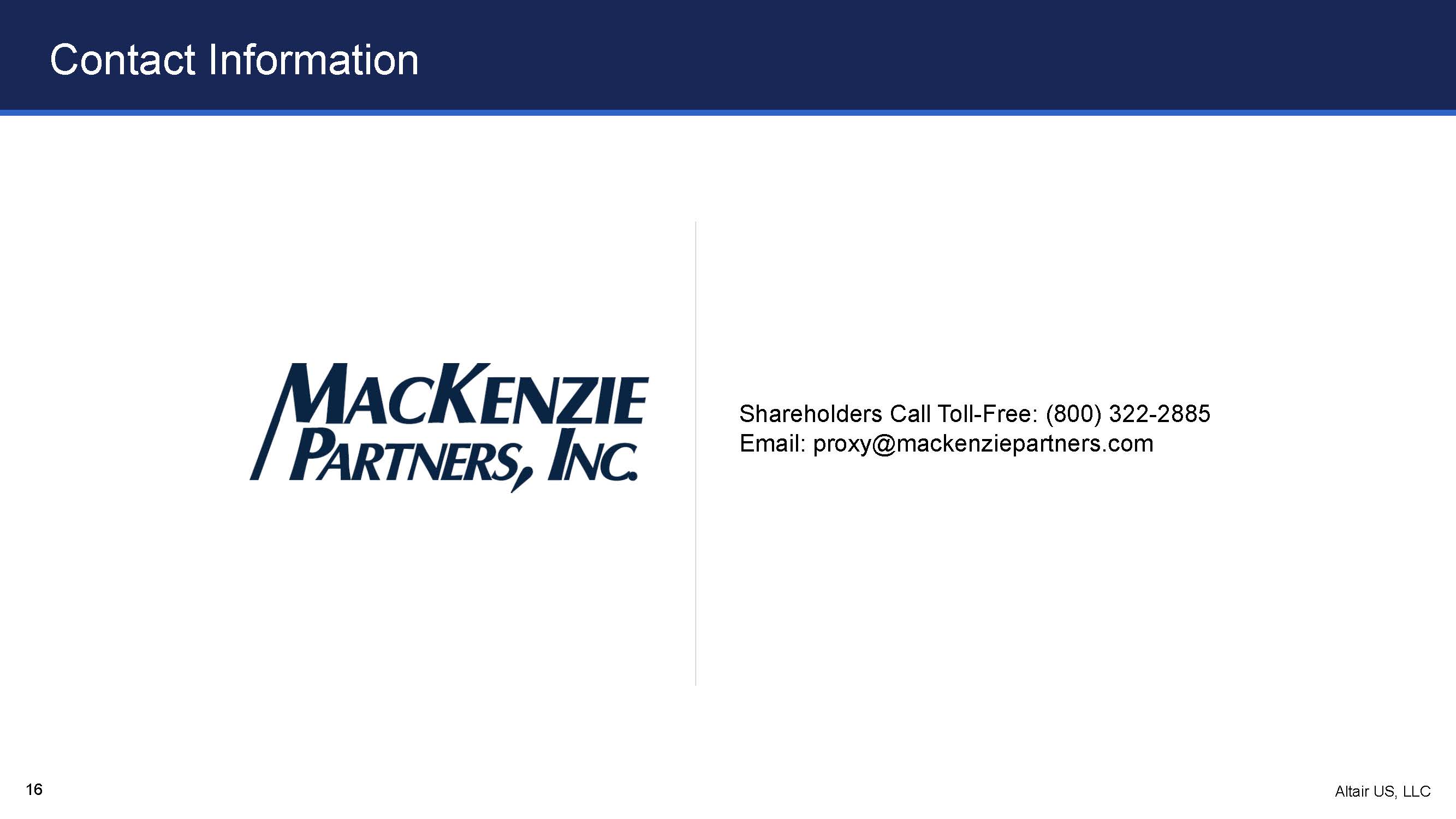 Altair encourages shareholders to read its presentation along with its proxy materials, which are forthcoming.