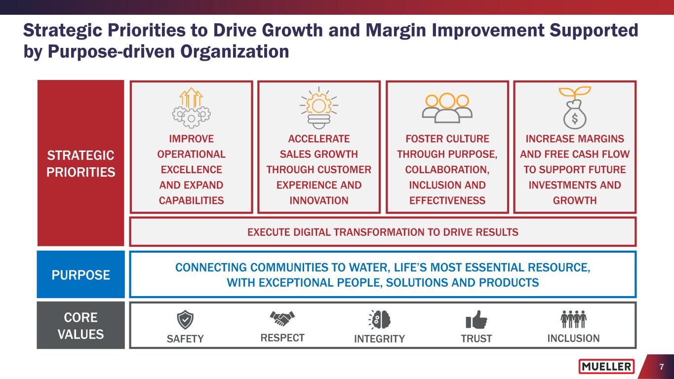 7 Strategic Priorities to Drive Growth and Margin Improvement Supported by Purpose-driven Organization STRATEGIC PRIORITIES CONNECTING COMMUNITIES TO WATER, LIFE’S MOST ESSENTIAL RESOURCE, WITH EXCEPTIONAL PEOPLE, SOLUTIONS AND PRODUCTS IMPROVE OPERATIONAL EXCELLENCE AND EXPAND CAPABILITIES ACCELERATE SALES GROWTH THROUGH CUSTOMER EXPERIENCE AND INNOVATION FOSTER CULTURE THROUGH PURPOSE, COLLABORATION, INCLUSION AND EFFECTIVENESS INCREASE MARGINS AND FREE CASH FLOW TO SUPPORT FUTURE INVESTMENTS AND GROWTH PURPOSE CORE VALUES EXECUTE DIGITAL TRANSFORMATION TO DRIVE RESULTS RESPECTSAFETY TRUST INCLUSIONINTEGRITY