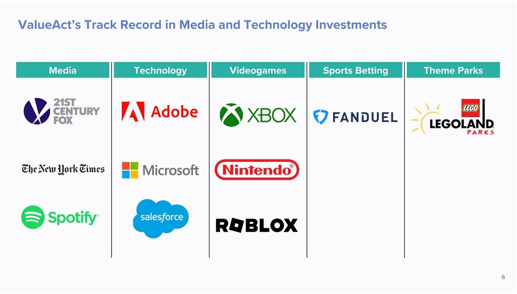 ValueAct’s Track Record in Media and Technology Investments Media Technology Videogames Sports Betting Theme Parks 6