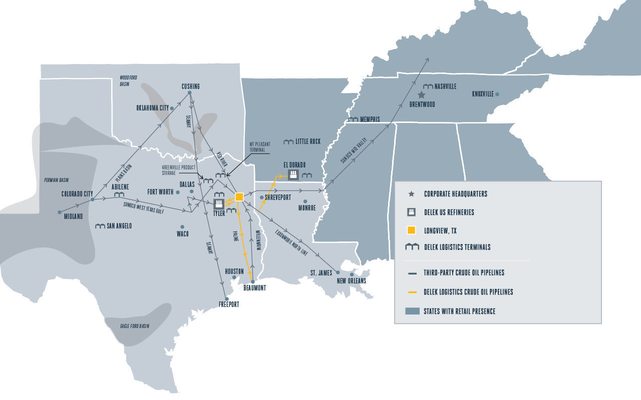 The Tyler refinery is currently the only major distributor of a full range of refined petroleum products within a radius of approximately 100 miles of its location. The Tyler refinery is designed to process mainly light, sweet crude oil, which is typically of a higher quality than heavier sour crudes. The Tyler refinery has access to crude oil pipeline systems that allow us access to East Texas, West Texas and limited Gulf of Mexico and foreign crude oils. Most of the crude supplied to the Tyler refinery is delivered by third-party pipelines and through pipelines owned by our logistics segment.