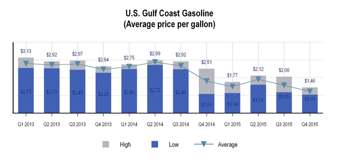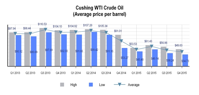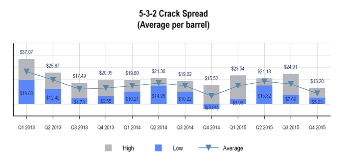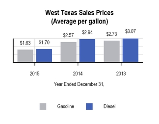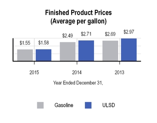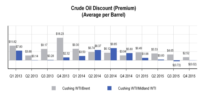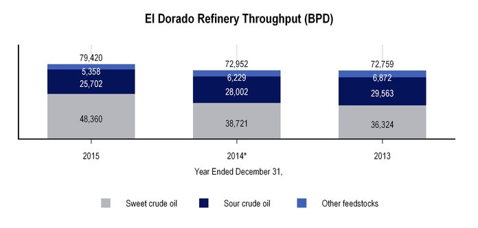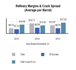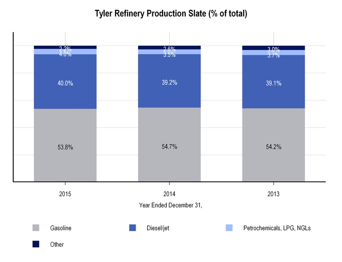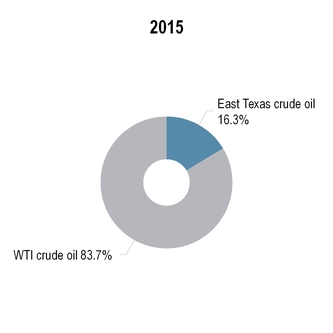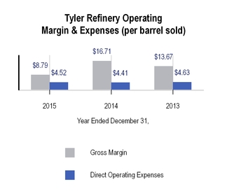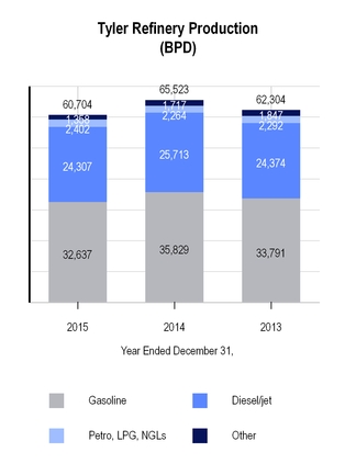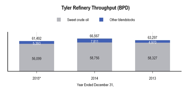 The charts below set forth information concerning crude oil received at the Tyler refinery for the years ended December 31, 2015 and 2014: