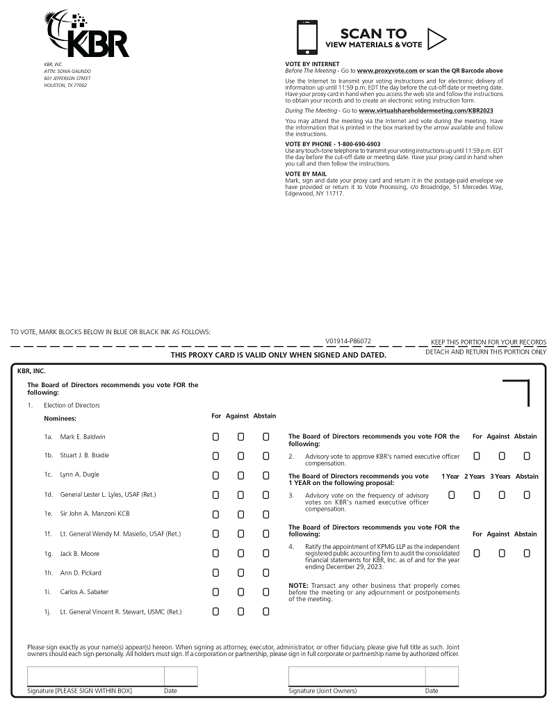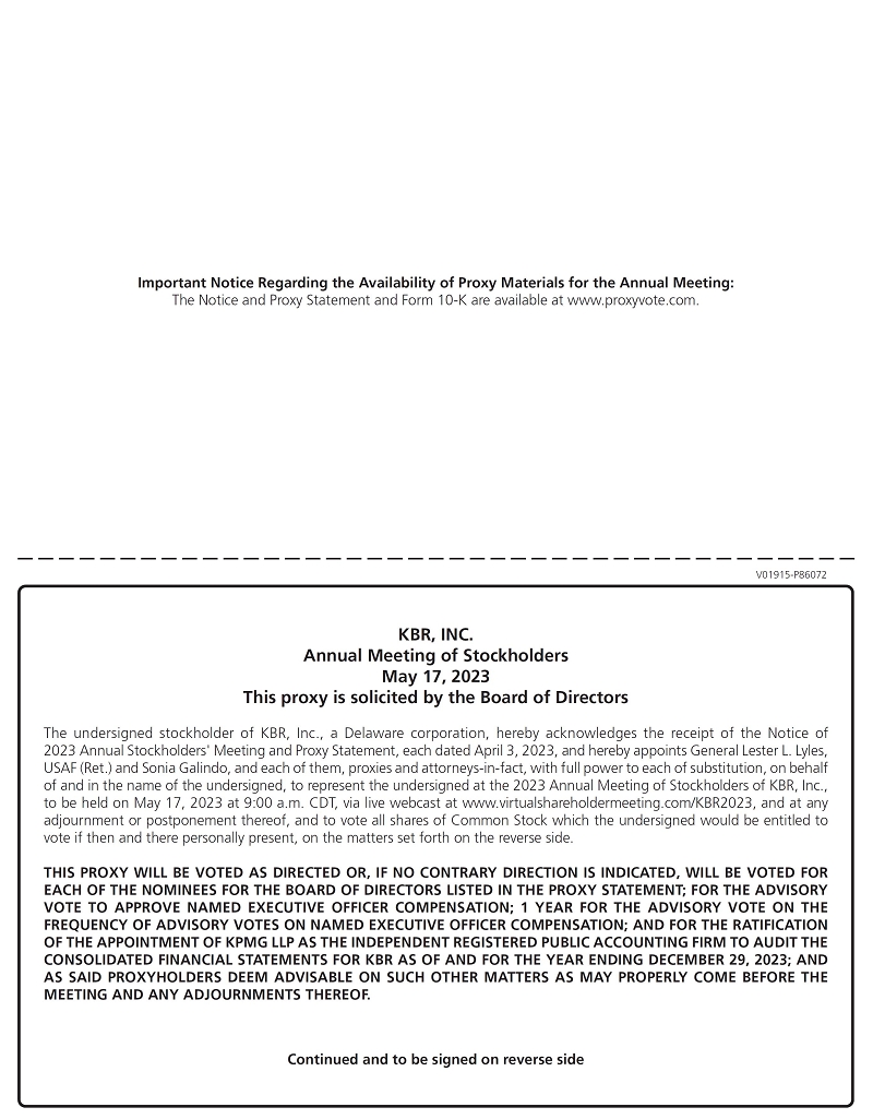 We invite you to attend KBR’s virtual annual stockholders’ meeting and act upon the following matters: |