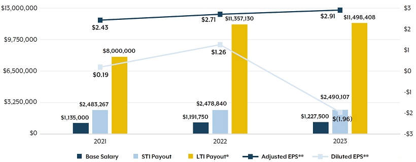 | ** | Diluted EPS reflects our net income (loss) divided by the weighted average number of common shares outstanding during the period in addition to common shares that would have been outstanding if potential common shares with a dilutive effect had been issued. Adjusted EPS excludes certain amounts included in diluted EPS. A reconciliation of adjusted EPS to diluted EPS is provided under the section titled “Non-GAAP Financial Information” at the end of this proxy statement. |