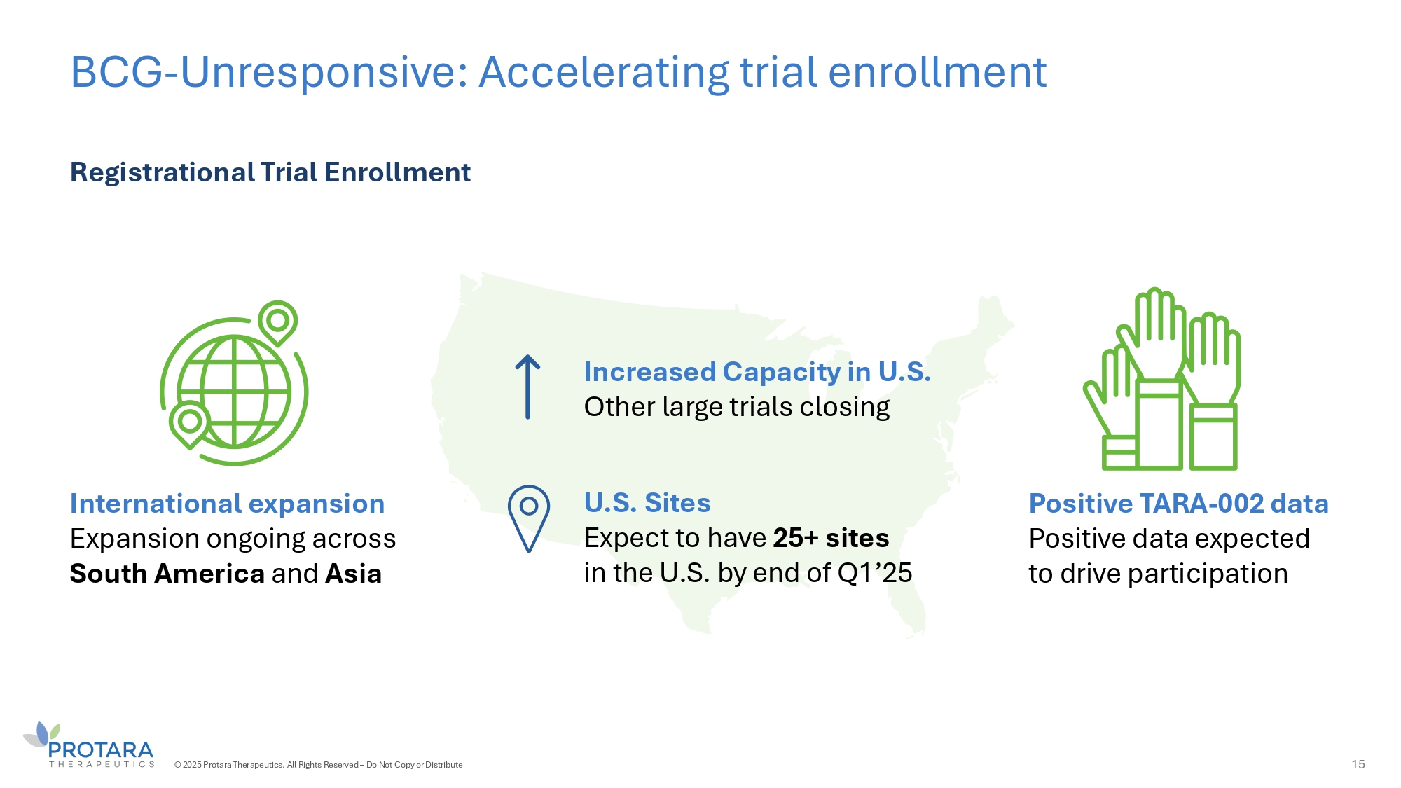 BCG - Unresponsive: Accelerating trial enrollment 15 Registrational Trial Enrollment International expansion Expansion ongoing across South America and Asia Positive TARA - 002 data Positive data expected to drive participation Increased Capacity in U.S. Other large trials closing U.S. Sites Expect to have 25+ sites in the U.S. by end of Ǫ1’25 © 2025 Protara Therapeutics. All Rights Reserved – Do Not Copy or Distribute