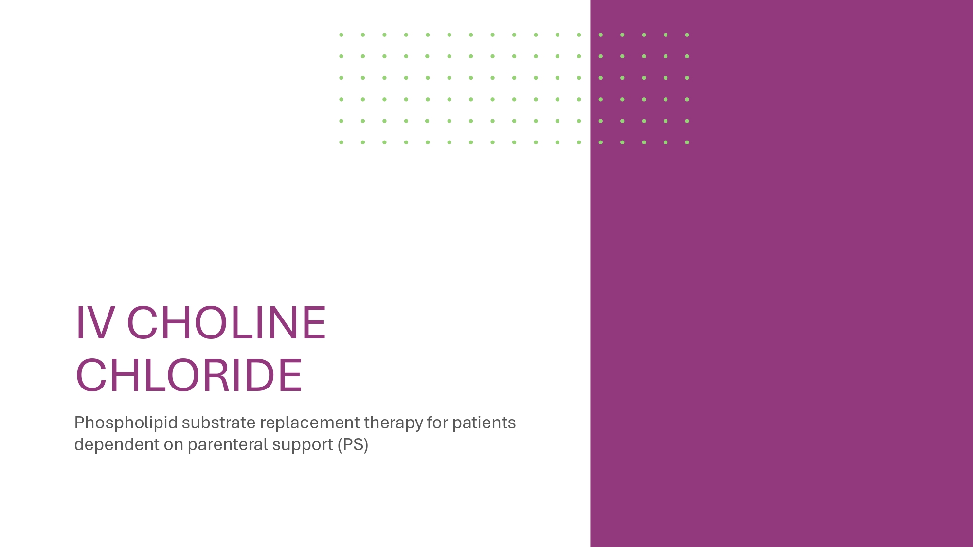 IV CHOLINE CHLORIDE Phospholipid substrate replacement therapy for patients dependent on parenteral support (PS)