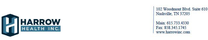 In connection with the Registration Statement on Form S-3 (File No. 333-265244) of Harrow Health, Inc. (the “Company”), the undersigned hereby requests, pursuant to Rule 461 promulgated under the Securities Act of 1933, as amended, acceleration of the effective date of said Registration Statement to 4:30 p.m. on June 6, 2022, or as soon thereafter as practicable.