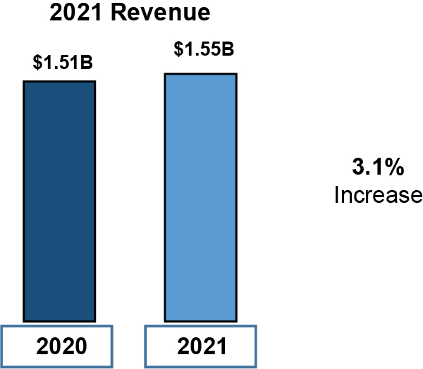 Total revenue increased 3.1% from $1.51 billion in 2020 to $1.55 billion in 2021. |