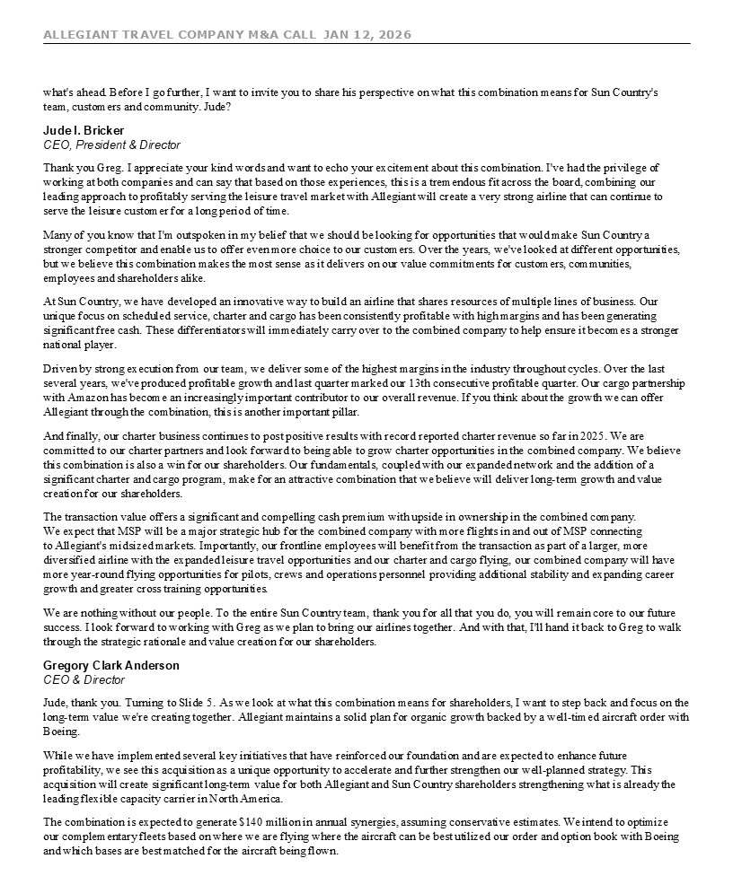 ALLEGIANT TRAVEL COMPANY M&A CALL JAN 12, 2026 3 Call