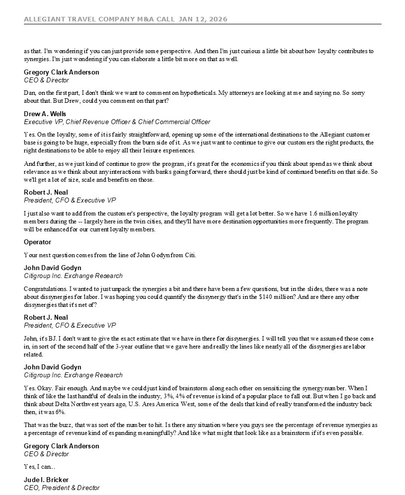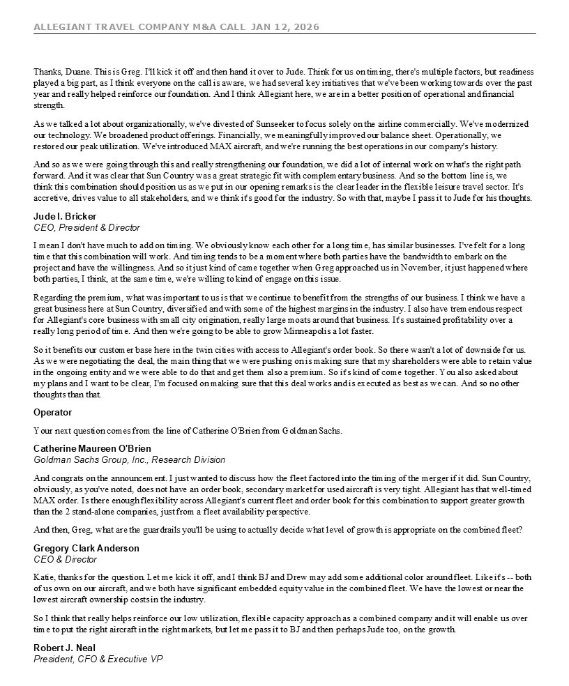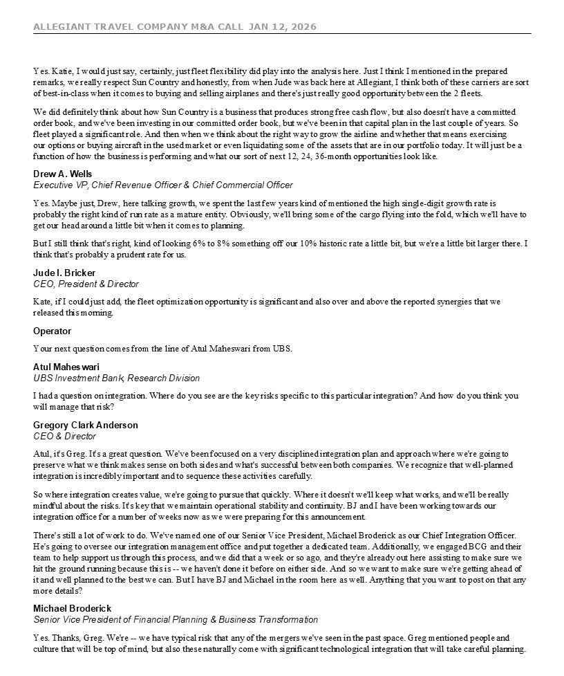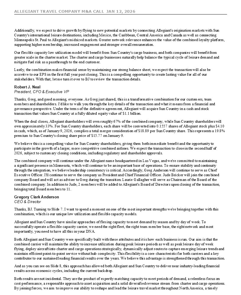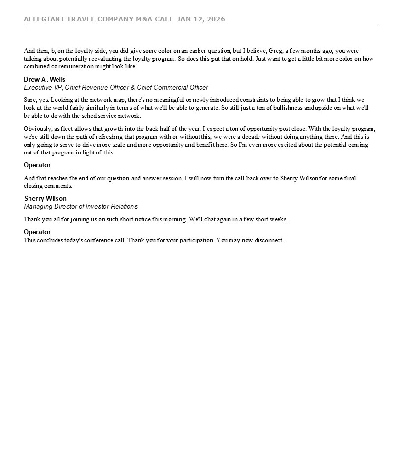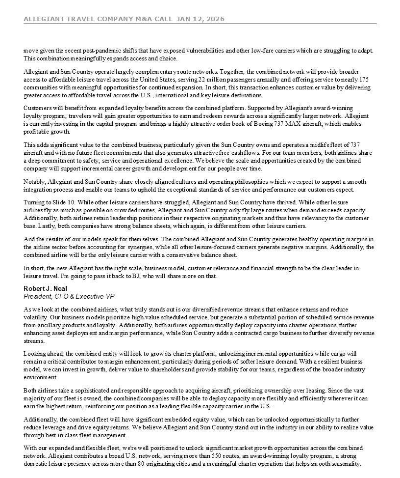 ALLEGIANT TRAVEL COMPANY M&A CALL JAN 12, 2026 7 move given the recent