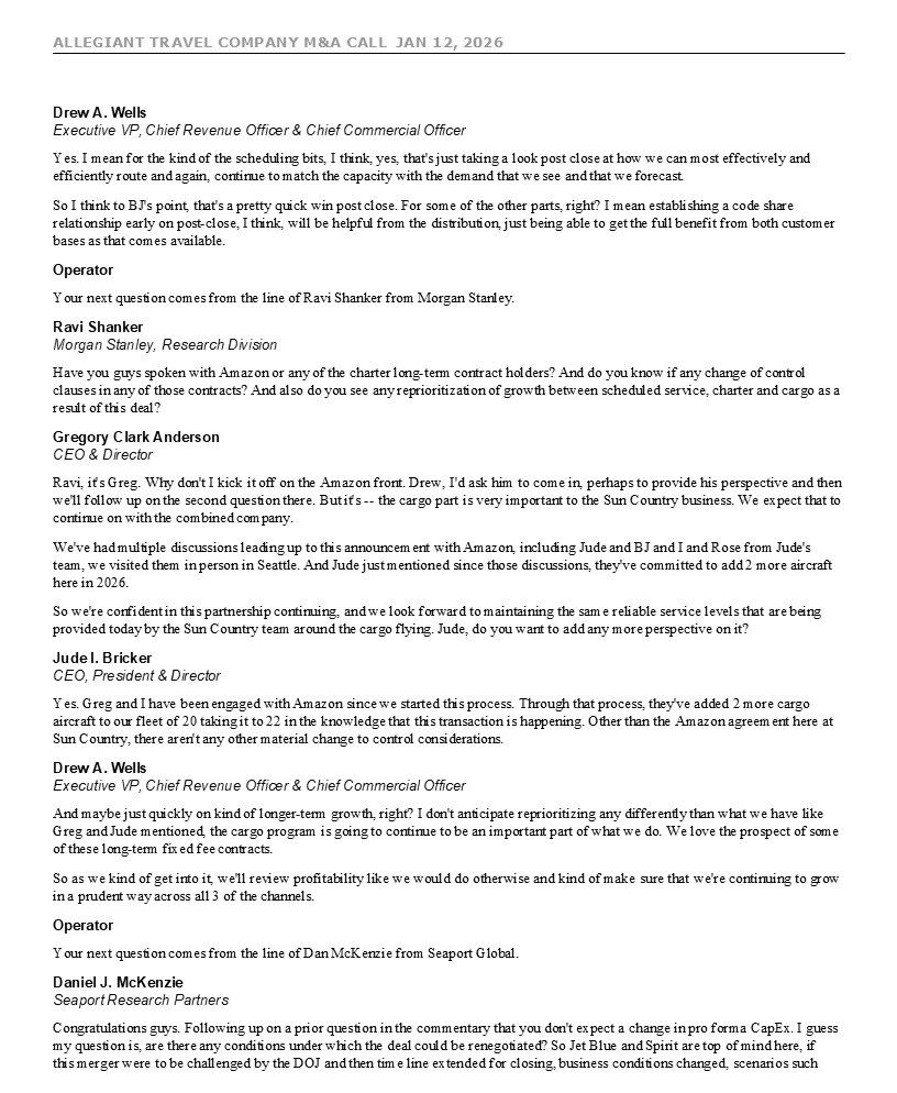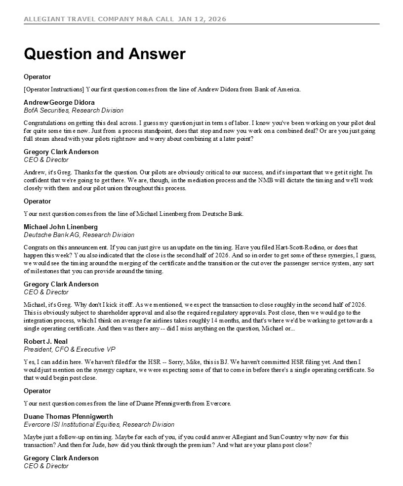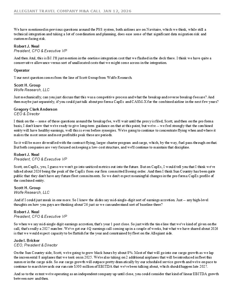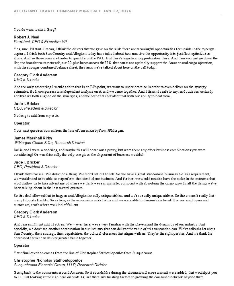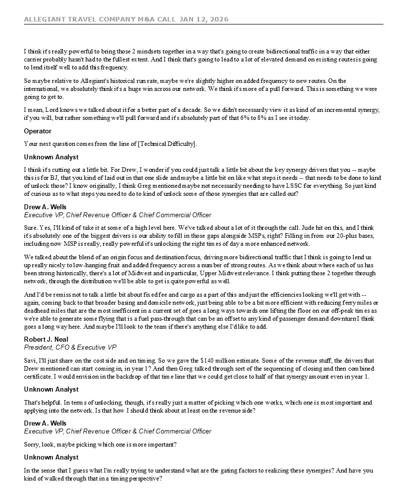 ALLEGIANT TRAVEL COMPANY M&A CALL JAN 12, 2026 7 move given the recent