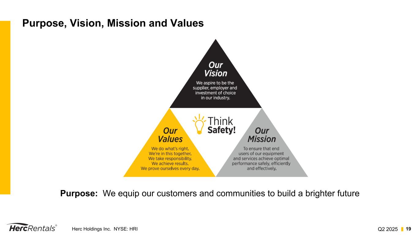 Q2 2025Herc Holdings Inc. NYSE: HRI 19 Purpose, Vision, Mission and Values Purpose: We equip our customers and communities to build a brighter future