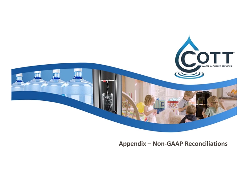 EARNINGS BEFORE INTEREST, TAXES, DEPRECIATION AND AMORTIZATION (EBITDA) Supplementary Information – NonGAAP Unaudited S&D Coffee and (1) LTM 9/28/19 Cott Consolidated Tea Primo Water Pro Forma (in millions of U.S. dollars) Net income $ (3.1) $ 14.1 $ 3.9 $ (13.3) Interest expense, net 77.9 - 11.2 89.1 Income tax expense (benefit) 2.7 - - 2.7 Depreciation & amortization 191.0 23.5 27.7 195.2 EBITDA $ 268.5 $ 37.6 $ 42.8 $ 273.7 (2) Acquisition and integration costs 14.7 0.2 2.4 16.9 Share-based compensation costs 10.7 0.5 4.4 14.6 Loss on diposal of property, plant and equipment, net 10.2 0.8 - 9.4 Foreign exchange and other losses (gains), net 4.7 - - 4.7 Other 4.3 0.8 0.7 4.2 Adjusted EBITDA $ 313.1 $ 39.9 $ 50.3 $ 323.5 Source: Company filings, Cott and Primo management. (1) S&D Coffee and Tea’s net income excludes impact of interest expense, income tax expense (benefit), and intercompany cost allocations as this information is currently unavailable. (2) Primo Water $2.4 million adjustment includes charges such as (i) acquisitionrelated expenses, (ii) expenses associated with restructuring and other costs, and (iii) activist investorrelated expenses. 27EARNINGS BEFORE INTEREST, TAXES, DEPRECIATION AND AMORTIZATION (EBITDA) Supplementary Information – NonGAAP Unaudited S&D Coffee and (1) LTM 9/28/19 Cott Consolidated Tea Primo Water Pro Forma (in millions of U.S. dollars) Net income $ (3.1) $ 14.1 $ 3.9 $ (13.3) Interest expense, net 77.9 - 11.2 89.1 Income tax expense (benefit) 2.7 - - 2.7 Depreciation & amortization 191.0 23.5 27.7 195.2 EBITDA $ 268.5 $ 37.6 $ 42.8 $ 273.7 (2) Acquisition and integration costs 14.7 0.2 2.4 16.9 Share-based compensation costs 10.7 0.5 4.4 14.6 Loss on diposal of property, plant and equipment, net 10.2 0.8 - 9.4 Foreign exchange and other losses (gains), net 4.7 - - 4.7 Other 4.3 0.8 0.7 4.2 Adjusted EBITDA $ 313.1 $ 39.9 $ 50.3 $ 323.5 Source: Company filings, Cott and Primo management. (1) S&D Coffee and Tea’s net income excludes impact of interest expense, income tax expense (benefit), and intercompany cost allocations as this information is currently unavailable. (2) Primo Water $2.4 million adjustment includes charges such as (i) acquisitionrelated expenses, (ii) expenses associated with restructuring and other costs, and (iii) activist investorrelated expenses. 27
