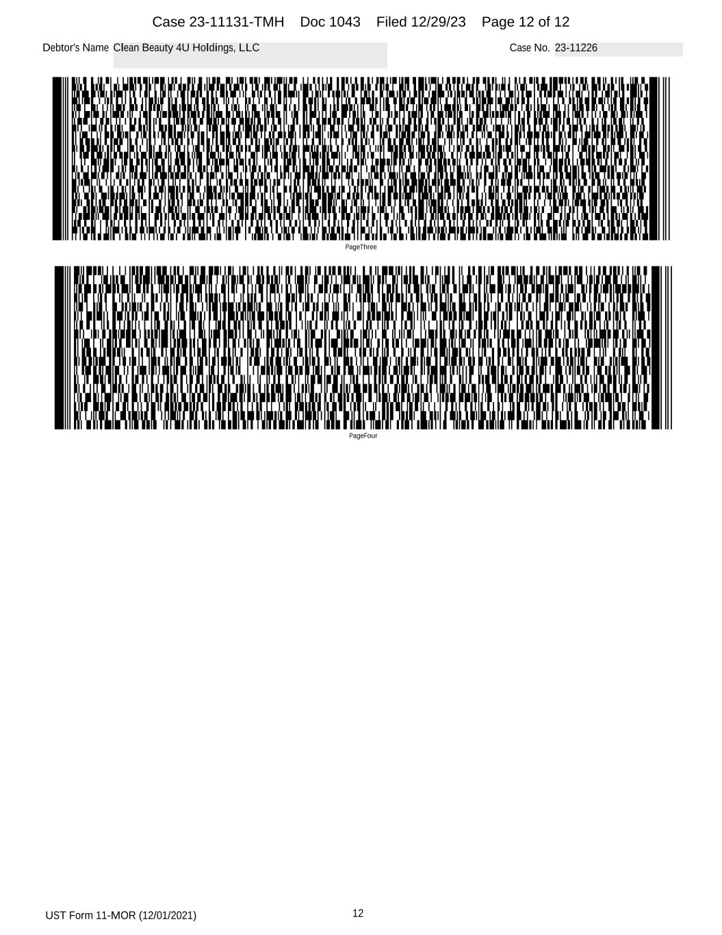 UST Form 11-MOR (12/01/2021) 12 Debtor's Name Clean Beauty 4U Holdings, LLC Case No. 23-11226 PageFour PageThree Case 23-11131-TMH Doc 1043 Filed 12/29/23 Page 12 of 12