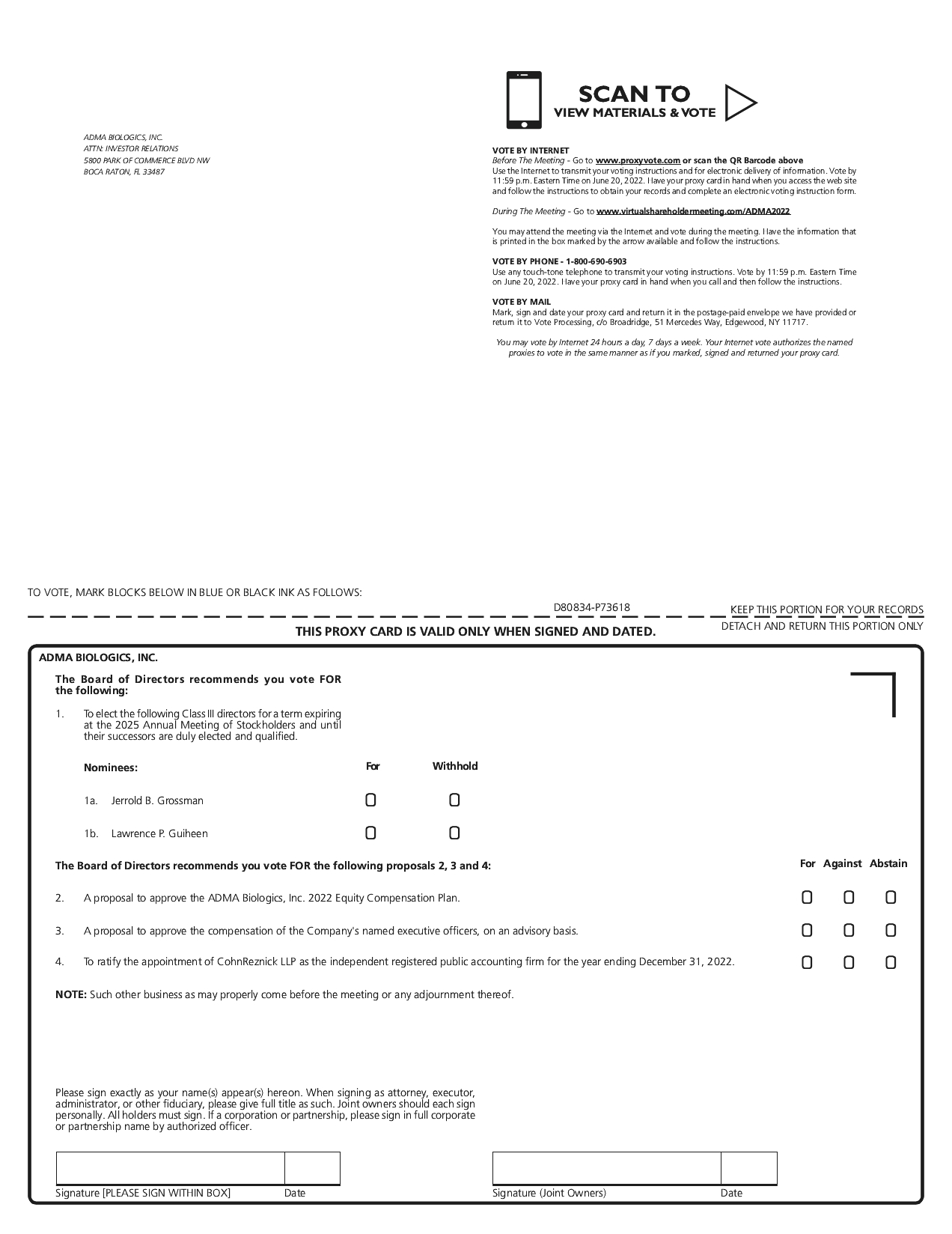 In connection with our October 2021 public offering of our common stock, on October 25, 2021: (i) Jerrold B. Grossman, our Vice Chairman of the Board, purchased 100,000 shares of our common stock, (ii) Brian Lenz, our Executive Vice President and Chief Financial Officer, purchased 30,000 shares of our common stock, (iii) Adam S. Grossman, our President and Chief Executive Officer, purchased 100,000 shares of our common stock directly and 250,000 shares of our common stock indirectly through an entity he controls, and (iv) Young T. Kwon, a director, purchased 100,000 shares of our common stock, all at the public offering price of $1.00 per share.