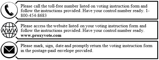 Please vote your shares via the internet or by telephone as soon as possible or alternatively, please sign, date, and return the enclosed voting instruction form (see the instructions below).