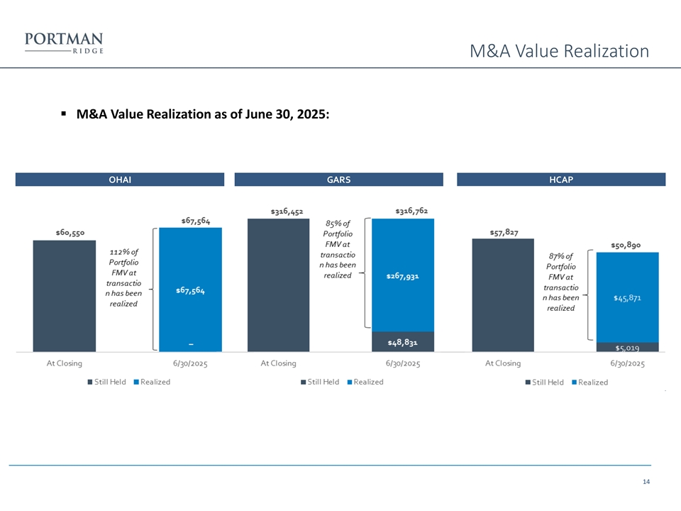 M&A Value Realization ▪ M&A Value Realization as of June 30, 2025: OHAI GARS HCAP 14