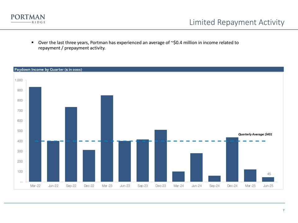 Limited Repayment Activity ▪ Over the last three years, Portman has experienced an average of ~$0.4 million in income related to repayment / prepayment activity. 7