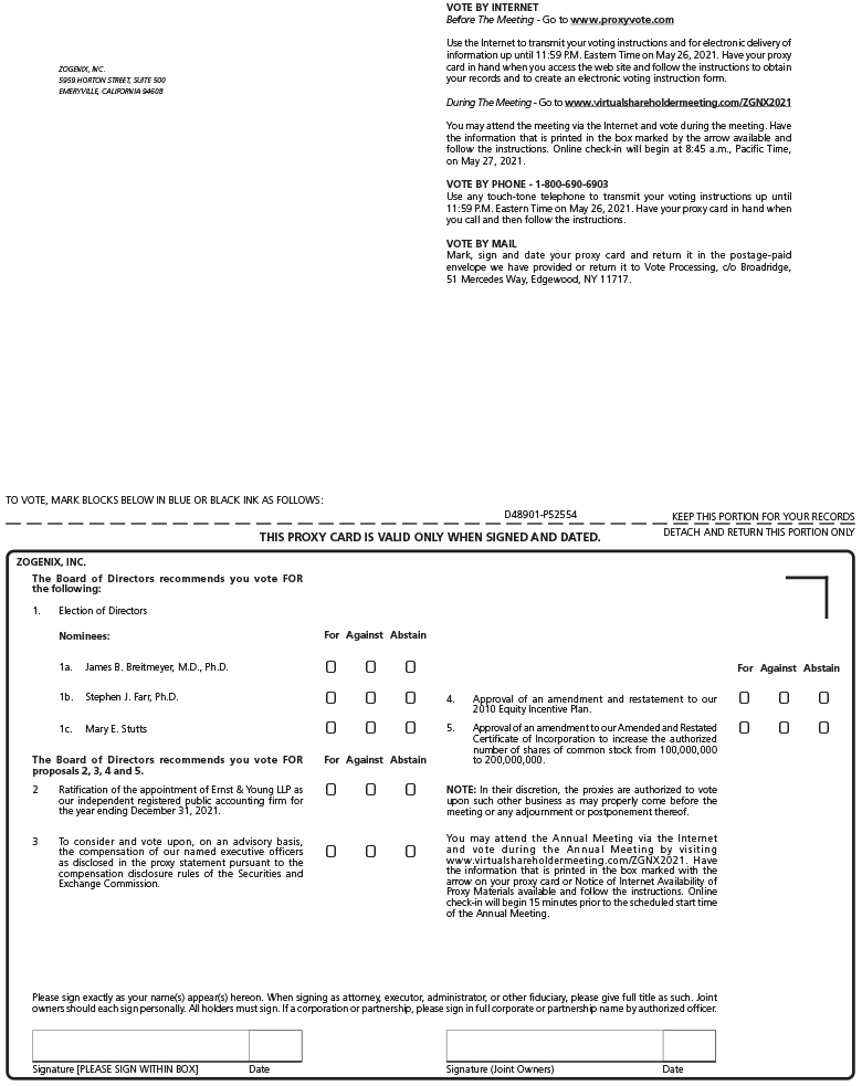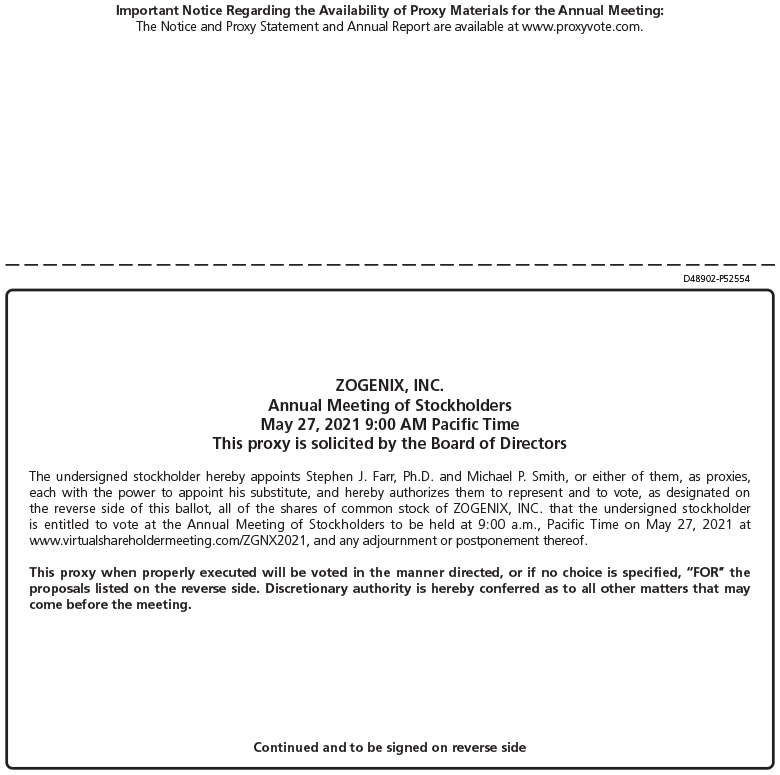 The annual meeting of stockholders of Zogenix, Inc. is being convened for the following purposes: