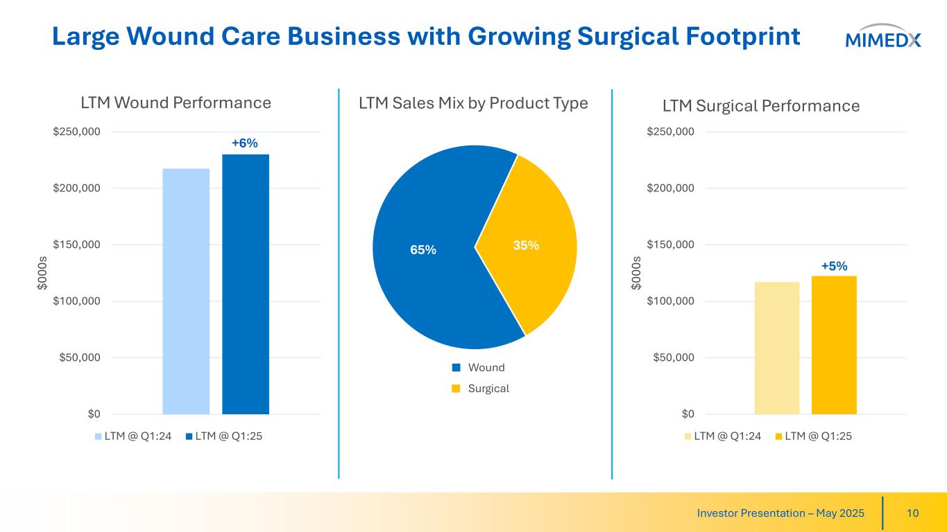 Highlights from Our Expanding Product Portfolio 9Investor Presentation – May 2025 Flagship Wound Allograft Growing Surgical Offering Expanding into Xenografts