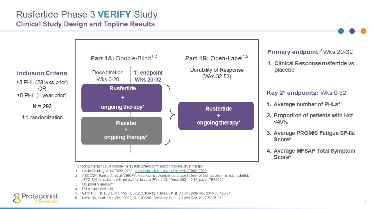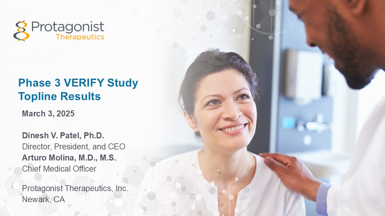 Phase 3 VERIFY Study Topline Results March 3, 2025 Dinesh V. Patel, Ph.D. Director, President, and CEO Arturo Molina, M.D., M.S. Chief Medical Officer Protagonist Therapeutics, Inc. Newark, CA 1