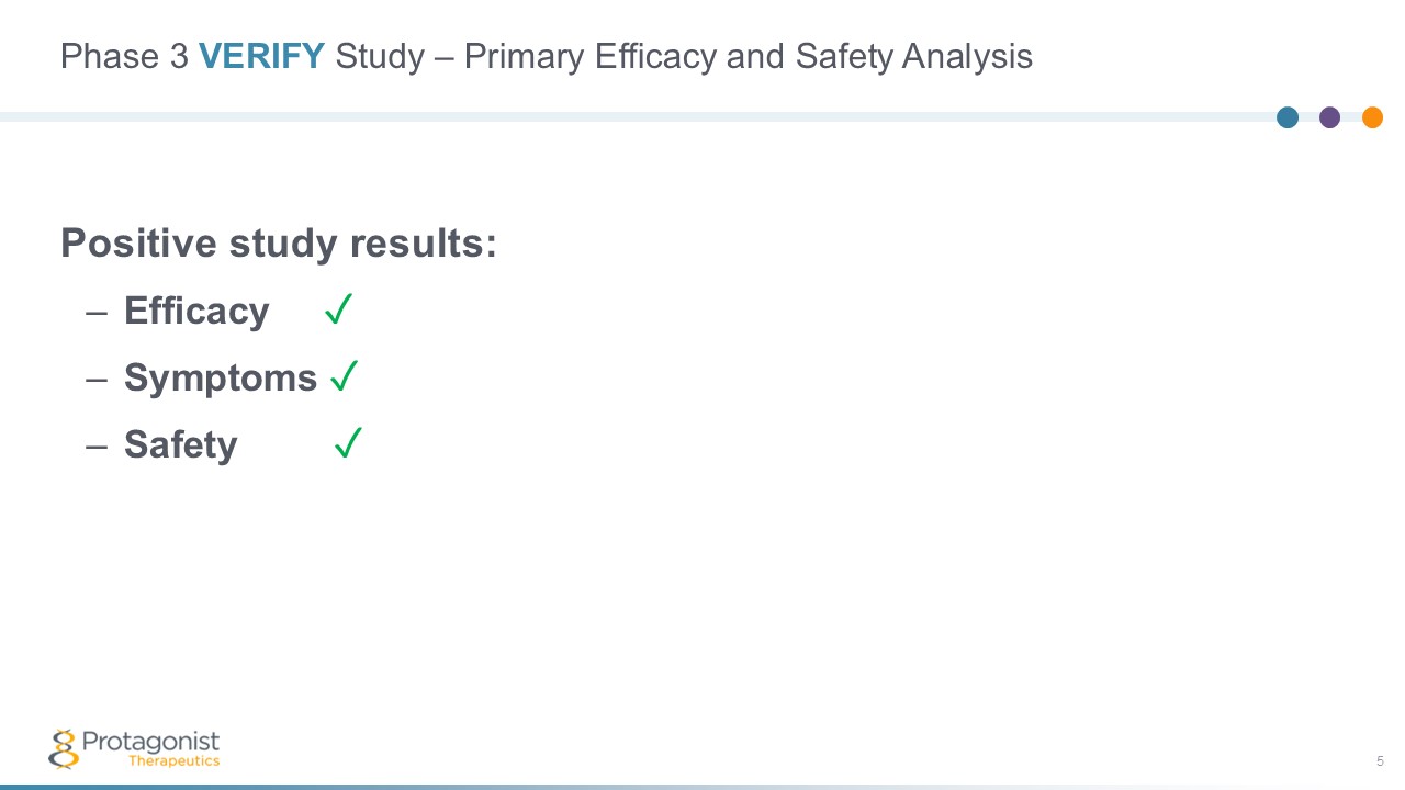 Phase 3 VERIFY Study – Primary Efficacy and Safety Analysis 5 Positive study results: – Efficacy ✓ – Symptoms ✓ – Safety ✓