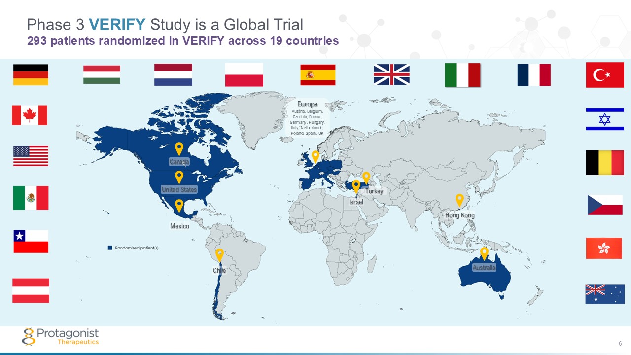 Phase 3 VERIFY Study is a Global Trial 6 Europe Austria, Belgium, Czechia, France, Germany, Hungary, Italy, Netherlands, Poland, Spain, UK Turkey Chil e Canada United States Mexico Hong Kong Australia Israel 293 patients randomized in VERIFY across 19 countries