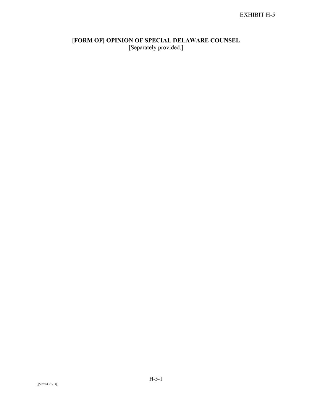 EXHIBIT H-5 H-5-1 [[5980433v.3]] [FORM OF] OPINION OF SPECIAL DELAWARE COUNSEL [Separately provided.]
