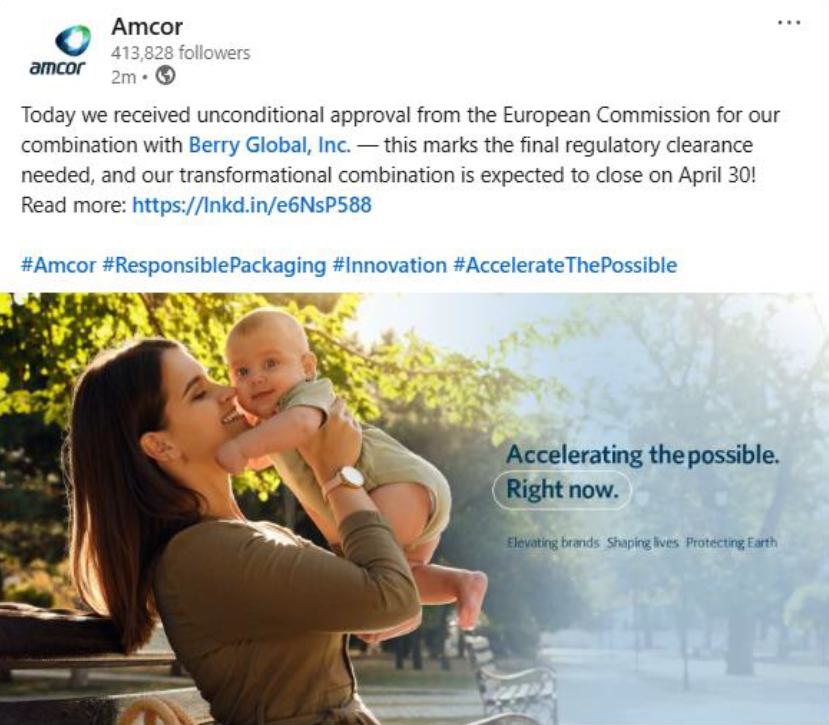 Explanatory Note: The following was posted to Amcor plc's LinkedIn on April 25, 2025.