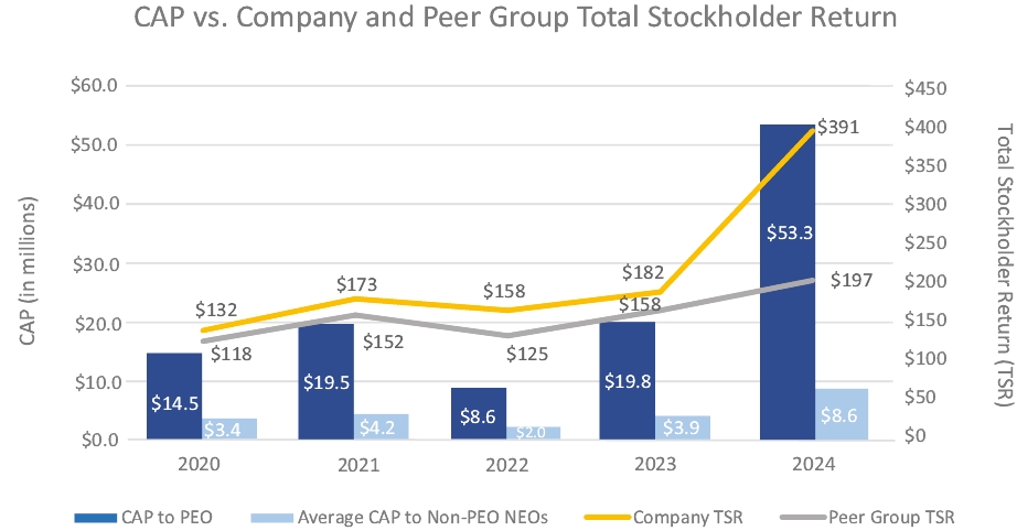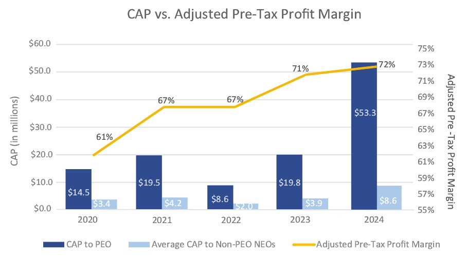 Messrs. Galik and Brody and Dr. Frank have historically been compensated in accordance with the policies discussed above under “Setting Executive Compensation” with a mixture of base salary, cash bonus, and stock awards under the Stock Incentive Plan. Mr. Galik’s, Mr. Brody’s and Dr. Frank’s 2024 base salary was $575,000. Each received an individual performance-based bonus. In addition to performance evaluations, consideration was given to the benefits derived from each individual’s existing direct or indirect ownership of membership interests in Holdings. Messrs. Galik and Brody and Dr. Frank received stock awards under the Stock Incentive Plan valued at $12,525,000, $3,295,000, and $1,210,000, respectively, for the year ended December 31, 2024.