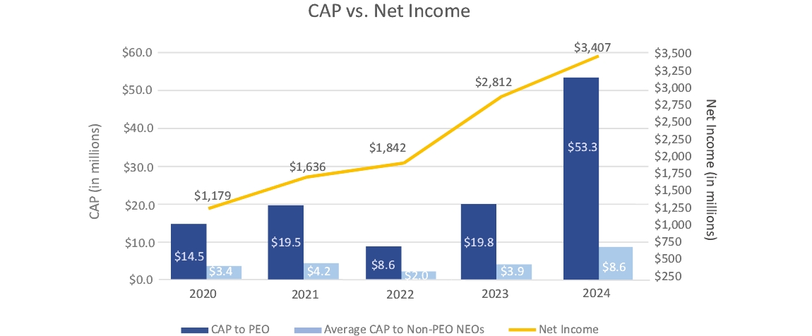 The Compensation Committee has traditionally set Mr. Peterffy’s compensation as salary only, capped at 0.2% of IBG LLC’s net income. During 2024, Mr. Peterffy was paid a salary of $575,000 by IBG LLC and no bonus or equity awards, in accordance with historical practices. During 2025, Mr. Peterffy will be paid a salary of $590,000 by IBG LLC. We believe that the ownership by Mr. Peterffy and his affiliates, through their direct and indirect ownership in Holdings, of a significant amount of the equity in IBG LLC aligns his interests with those of our common stockholders.