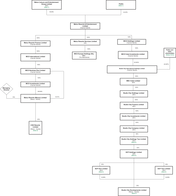 | • | “Melco Leisure” refers to Melco Leisure and Entertainment Group Limited, a company incorporated under the laws of the British Virgin Islands and a wholly-owned subsidiary of Melco International; |