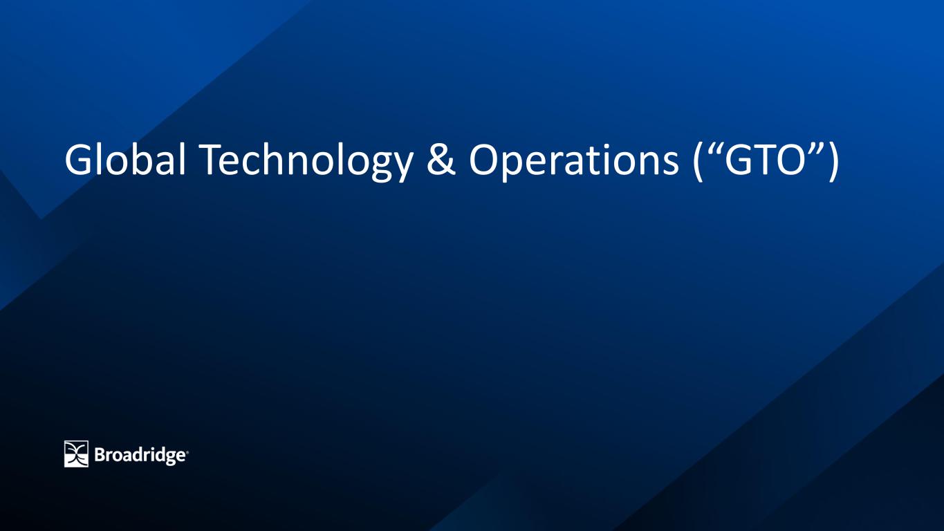 18 FY'21 FY'22 FY'23 FY'24 FY'25 Broadridge is a leading technology provider for capital markets and wealth management $1.8BGTO Recurring Revenue Avg. annual growth 11% 7% Capital Markets Wealth & Inv. Mgmt. 14% Note: Growth in constant currency. Information about our use of Non-GAAP measures and reconciliations to GAAP measures may be found on slides 44 – 55 $0.7B $1.1B