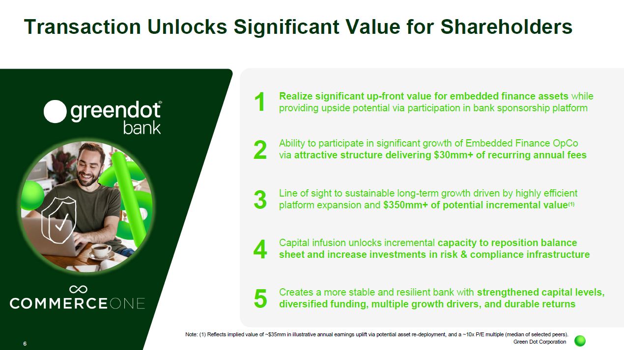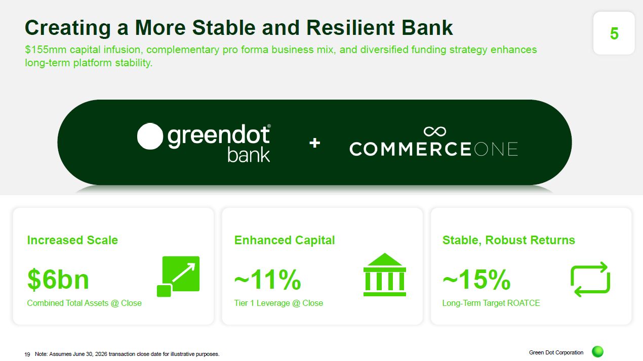 Green Dot Corporation 19 Note: Assumes June 30, 2026 transaction close date for illustrative purposes. 5 Increased