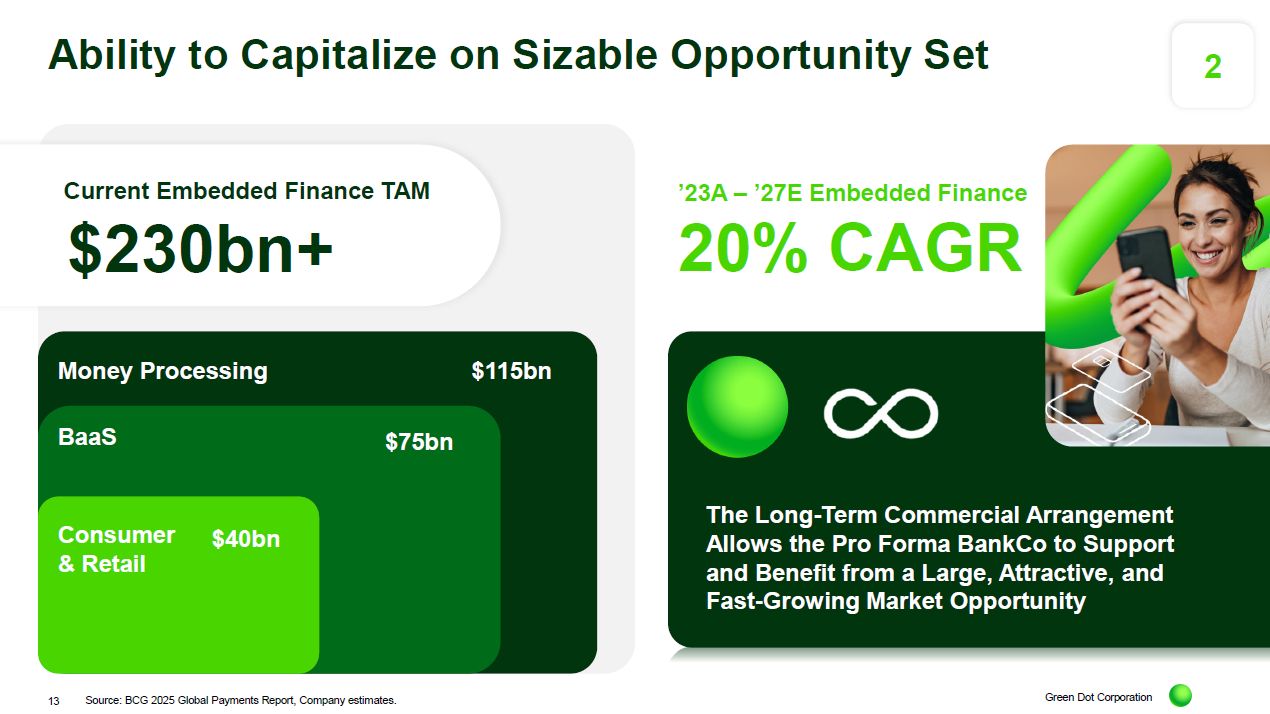 TAM $230bn+ $115bn Money Processing BaaS $75bn Consumer & Retail $40bn The Long-Term Commercial Arrangement Allows the Pro Forma BankCo to Support and Benefit from a Large, Attractive, and Fast-Growing Market