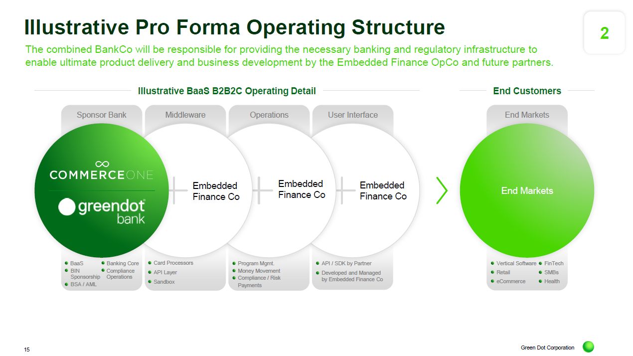 Green Dot Corporation Illustrative Pro Forma Operating Structure The combined BankCo will be responsible for providing